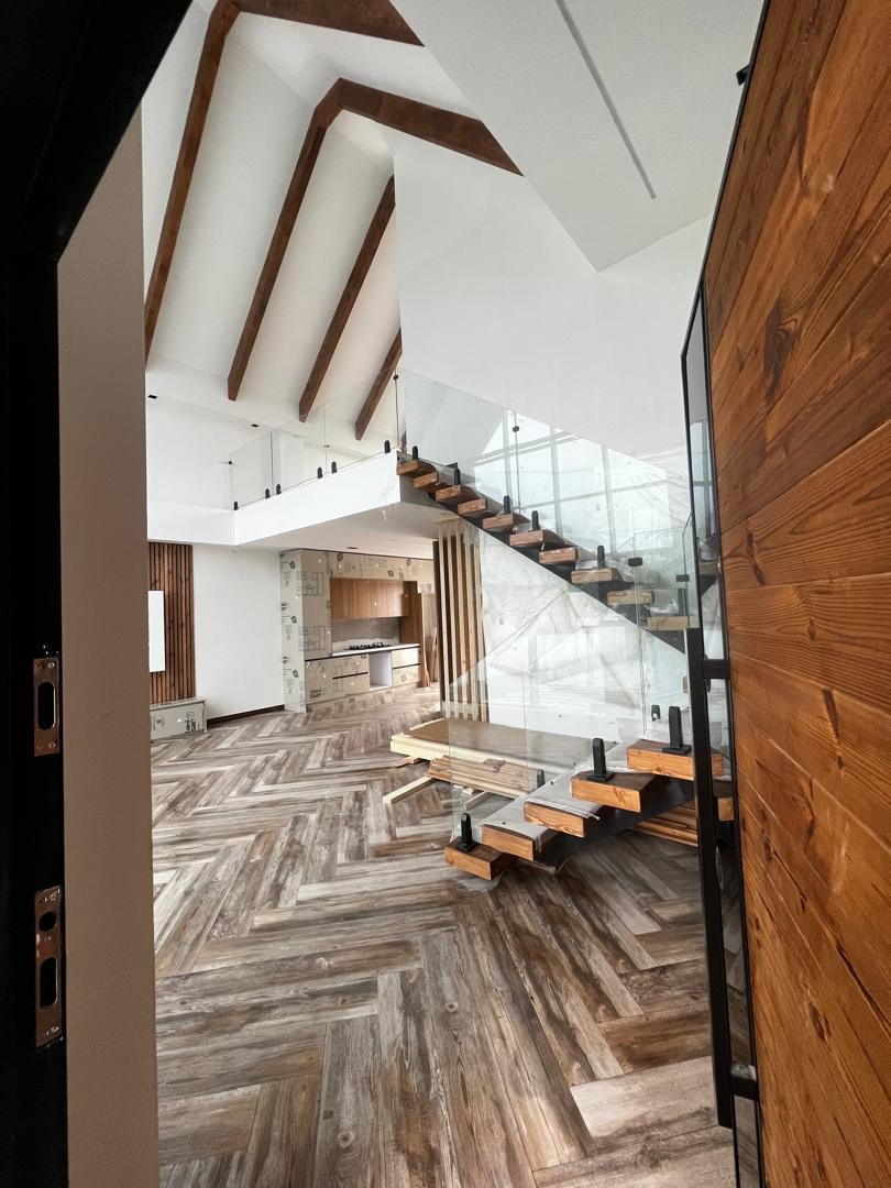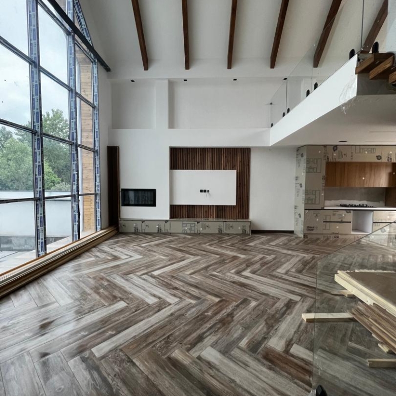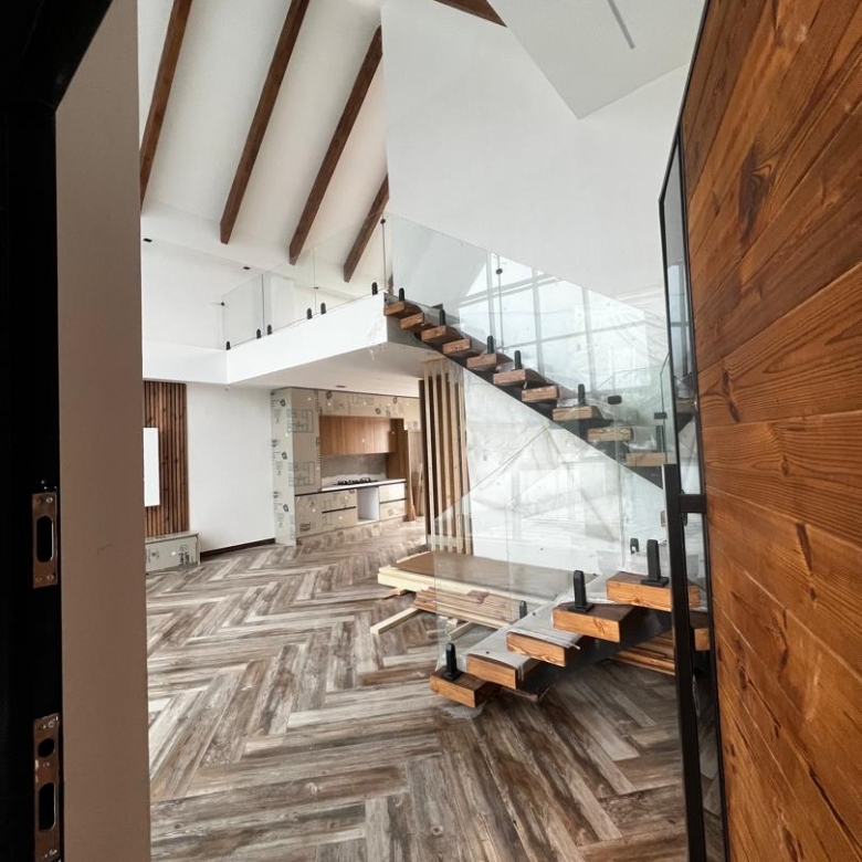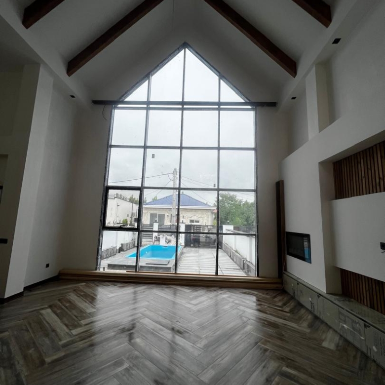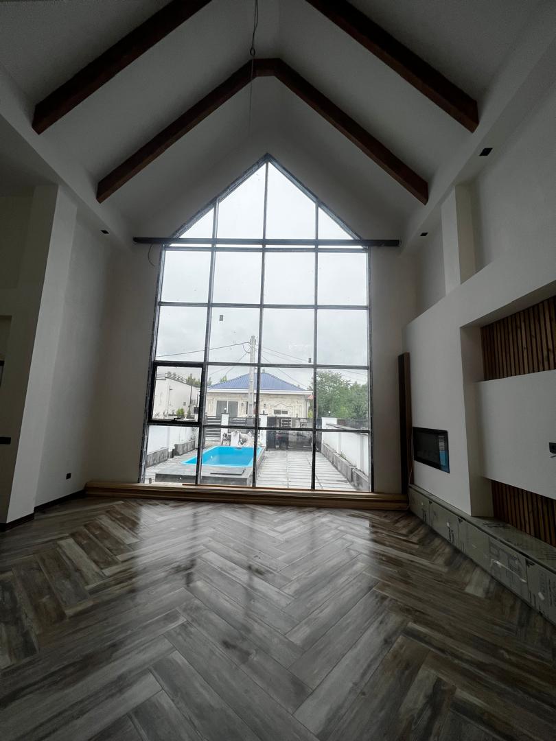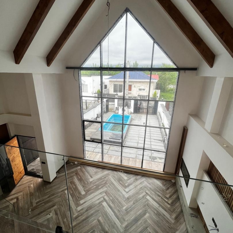 ویلا مدرن دوبلکس زمین ۲۵۰ متری، زیر بنا ۱۴۰ متر با نما کرتین وال دارای دو خواب و هر دو خواب مستر دار و انباری مجزا